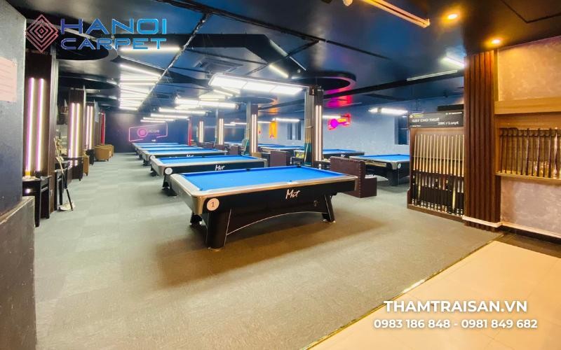Thảm trải sàn bida là loại thảm chuyên dụng được thiết kế dành riêng cho khu vực bàn billiards, giúp tăng độ bám, hạn chế trơn trượt và tạo cảm giác di chuyển êm ái cho người chơi. Ngoài ra, thảm còn giúp giảm tiếng ồn và tạo sự đồng bộ cho khu vực thi đấu hoặc giải trí.